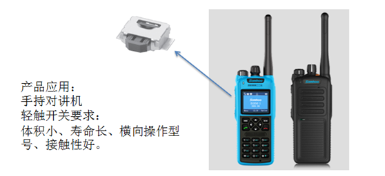 (三)手持對(duì)講機(jī):建議使用橫向操作型B3U-3000P-B型號(hào)開關(guān),用于控制手持對(duì)講機(jī)的音量。