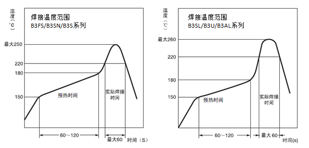 歐姆龍B3FS、B3SN、B3S等系列輕觸開關(guān)可使用回流焊進(jìn)行焊接,以下是輕觸開關(guān)回流焊的一些注意事項(xiàng)。