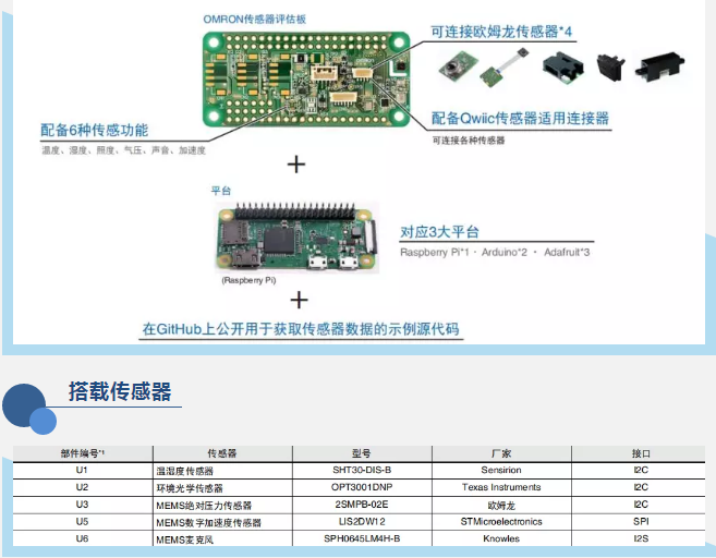 歐姆龍電子部件作為一家在傳感器領(lǐng)域有著先進(jìn)技術(shù)的高科技公司發(fā)布了傳感器評估板——2JCIE-EV,展示了歐姆龍領(lǐng)先于世界的高新技術(shù)在傳感器領(lǐng)域的應(yīng)用,幫助設(shè)計(jì)人員和工程師快速評估和開發(fā)測試。同時該評估板支持接入三大開放性平臺(Raspberry Pi*1、Arduino*2、Adafruit*3)并且適用于多種類型傳感器的評估。