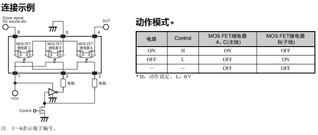 由三個(gè)MOS FET繼電器組成1組常開(kāi)觸點(diǎn)(SPST-NO) + T開(kāi)關(guān)功能。