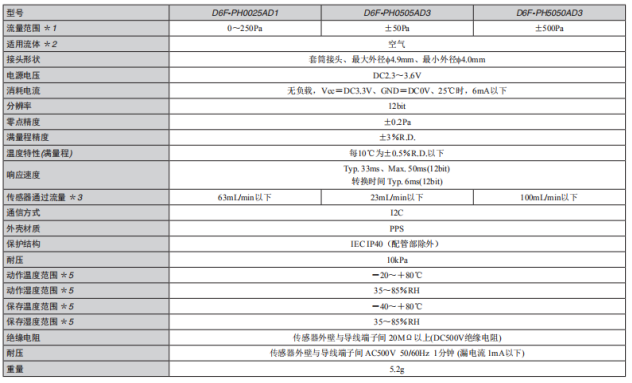 歐姆龍壓差傳感器D6F系列技術參數(shù)