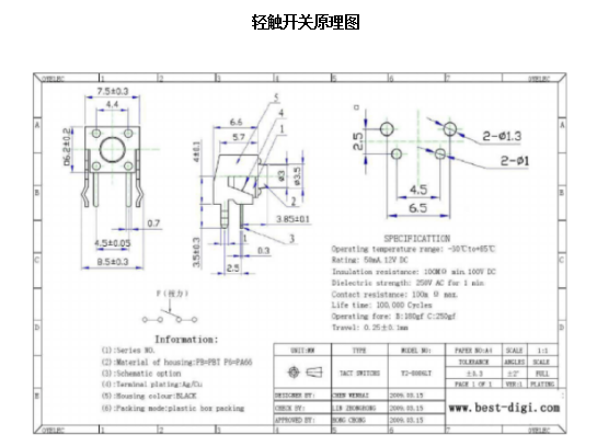 挑選輕觸開(kāi)關(guān)方法二:出廠檢驗(yàn)的方法和項(xiàng)目也影響最終輕觸開(kāi)關(guān)的品質(zhì),比如是外觀、