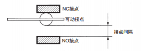 接點(diǎn)間隔是微動開關(guān)的設(shè)計(jì)目標(biāo),歐姆龍根據(jù)市場要求,將接點(diǎn)間隔定為0.25mm、0.5mm、1.0mm、1.8mm:4種,一般接點(diǎn)間隔的標(biāo)準(zhǔn)為0.5mm。