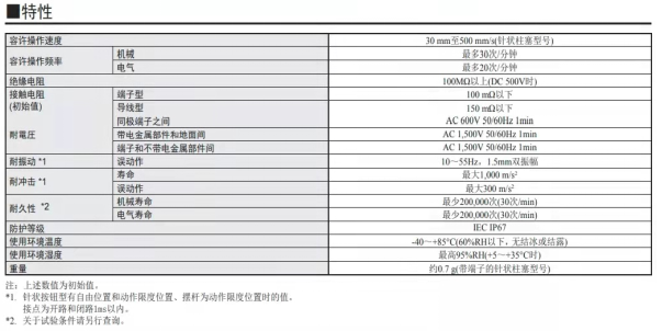 歐姆龍D2AW微動開關的機械壽命和電氣壽命均為至少200,000次(30次/min),符合IEC IP67防護等級,在60%RH以下、無結冰或結露的情況下,能夠在-40℃~+85℃的溫度范圍內工作,而在最高95%RH的環(huán)境中,能夠在+5~+35℃的溫度范圍內工作。不僅如此,該開關還具有很強的耐電壓性和耐沖擊性,可適用于工作條件較為嚴苛的環(huán)境中。