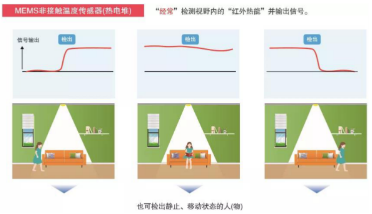 一、采用熱電堆元件,相較于傳統(tǒng)的焦電傳感器,可實(shí)現(xiàn)靜態(tài)人體測(cè)溫;
