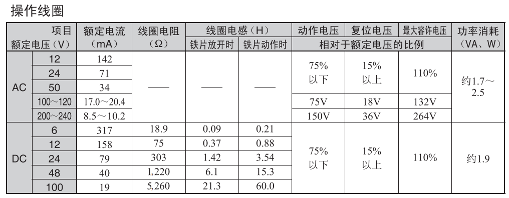 用1個線圈可以覆蓋AC100V系列的AC100-120V 50/60Hz及AC200V系列的AC200-240V 50/60Hz,實(shí)現(xiàn)了寬范圍線圈;