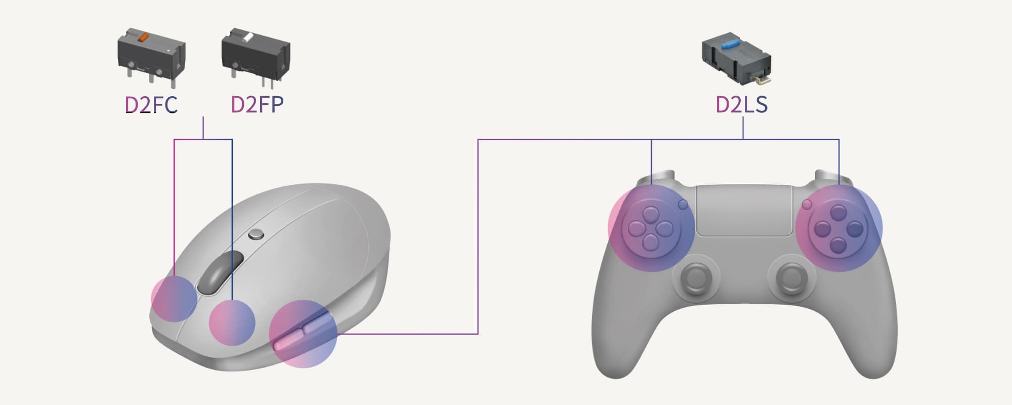 微動(dòng)開(kāi)關(guān)是具有微小接點(diǎn)間隔和速動(dòng)機(jī)構(gòu),用規(guī)定的行程和力度進(jìn)行開(kāi)關(guān)動(dòng)作的一種微小型開(kāi)關(guān)。在最開(kāi)始,歐姆龍并沒(méi)有生產(chǎn)鼠標(biāo)專用微動(dòng)開(kāi)關(guān)的想法,而契機(jī)來(lái)源于一家鼠標(biāo)廠商,他們非常喜歡歐姆龍微動(dòng)開(kāi)關(guān)D2F系列的操作感和輕觸感,作為日常使用頻率極高的的鼠標(biāo),具有“后行程”功能的D2F型可從推入位置繼續(xù)推入,對(duì)手指產(chǎn)生的負(fù)擔(dān)微小。于是便于手指操作且尺寸較小的D2F系列開(kāi)關(guān)正巧成為了一款可滿足鼠標(biāo)開(kāi)關(guān)需求的商品。