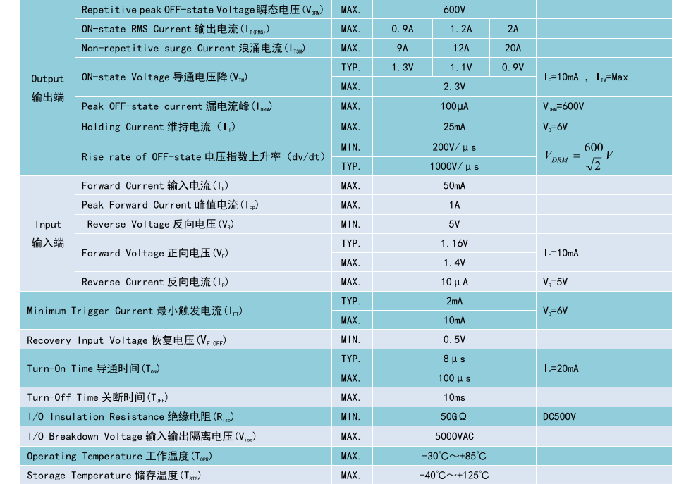 光可控硅繼電器BC2223/BC3223/BC5223