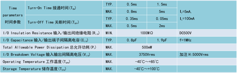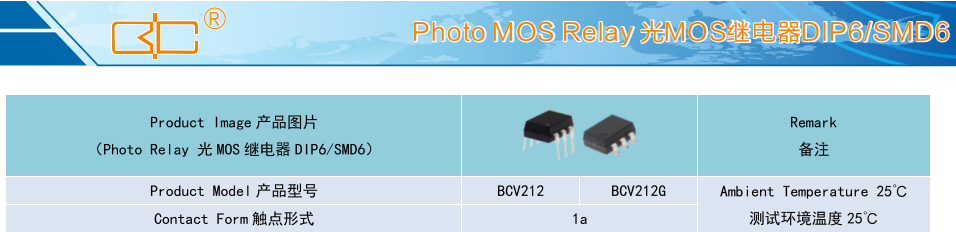 (Relay 光 MOS 繼電器 DIP6/SMD6),Product Model產(chǎn)品型號:BCV212/BCV212G,Contact Form 觸點(diǎn)形式:1a,Ambient Temperature 25'C測試環(huán)境溫度 25°C