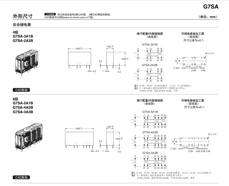 G7SA-4A2B DC24V屬小型纖薄型安全繼電器