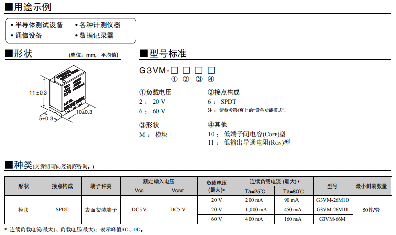 G3VM-26M10/M11 MOSFET歐姆龍繼電器模塊