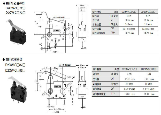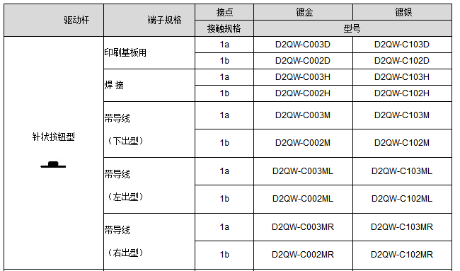 D2QW系列 密封型極小型基本開關(guān) 高可靠性和耐環(huán)境性兼?zhèn)涞拈L行程密封型開關(guān)