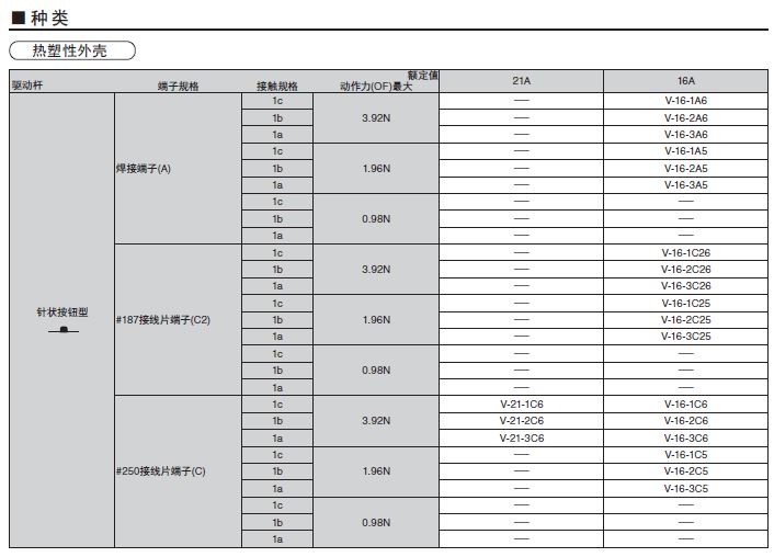 V小型基本開關小型、高容量開關