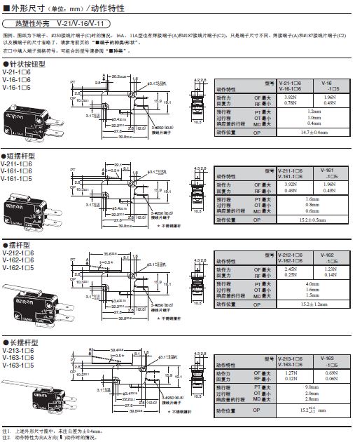 V-15歐姆龍微動開關