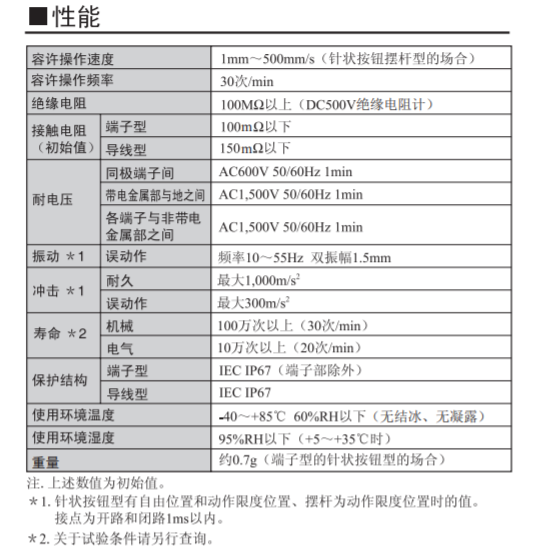 社內(nèi)較小尺寸、可進行可靠開關(guān)的長行程型開關(guān) 主體部分尺寸為前代產(chǎn)品的78%,有利于設(shè)備的小型化。 沒有擺桿也同樣使用方便的長行程規(guī)格 (OT參考值 :1.4mm) 不含對環(huán)境有害的物質(zhì),導(dǎo)線類型也實現(xiàn)了無鉛化。