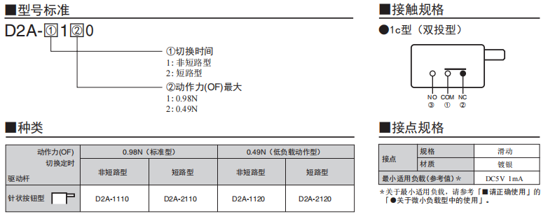 D2A 小型檢測歐姆龍開關(guān)