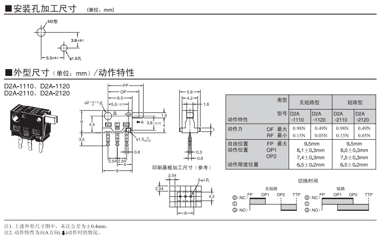 采用按鈕動作式的歐姆龍超小型開關(guān) 歐姆龍超小型(高6×寬8×深4.2mm)、輕量(約0.3g)、3mm的長行程。 由于是滑動方式,所以短路、非短路的切換時間可根據(jù)使用用途進(jìn)行選擇。