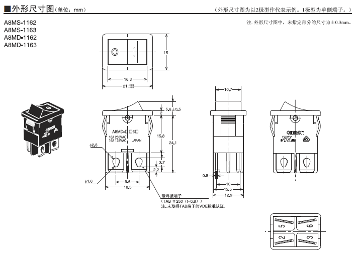 A8WD-1163船形歐姆龍開關(guān)