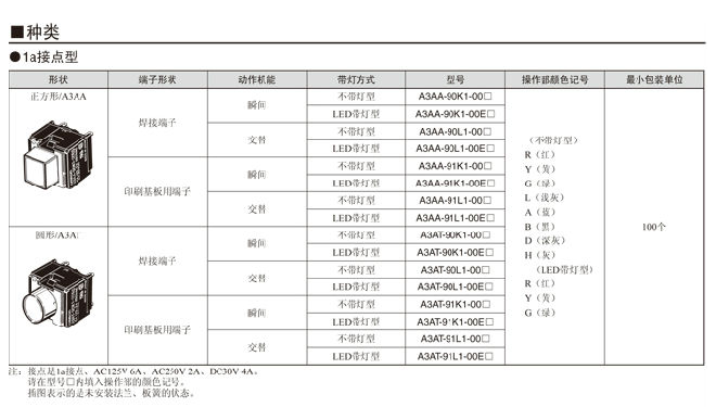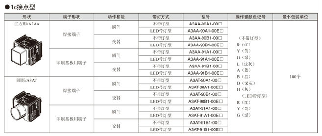 A3A系列 按鈕開關(guān) 大容量、緊湊型、小型方體型按鈕開關(guān)
