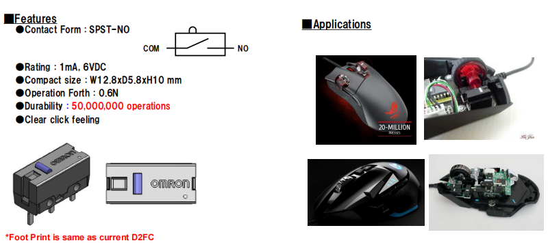 D2FC-F-7N 500萬次歐姆龍鼠標(biāo)開關(guān)
