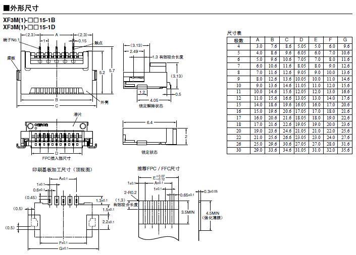 XF3M 旋轉(zhuǎn)后鎖結(jié)構(gòu)(端子間距0.5mm、1.0mm、雙面觸點類型)