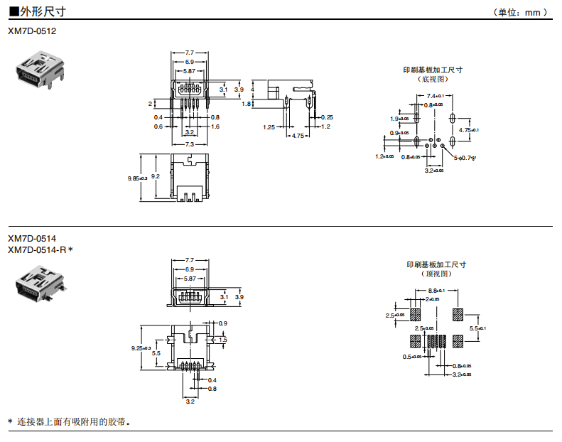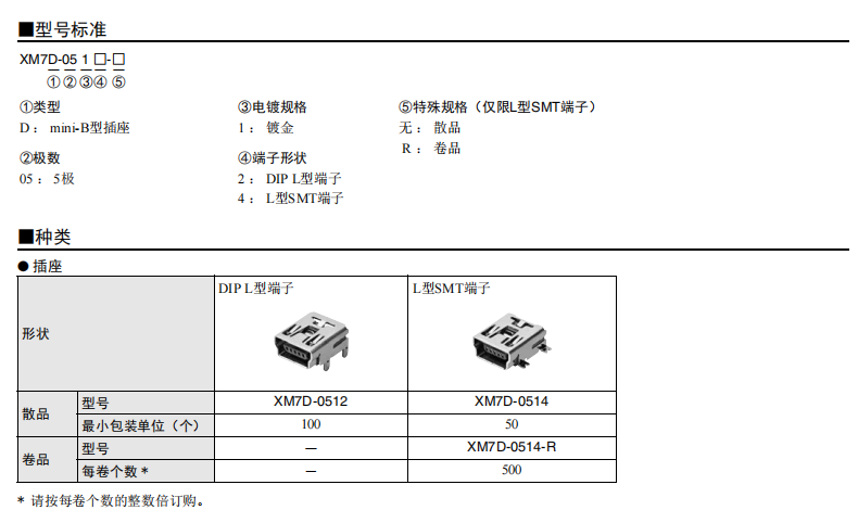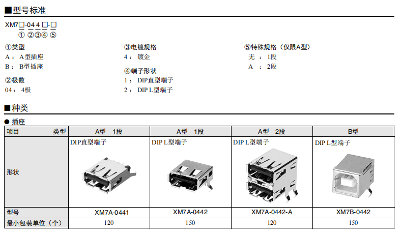 符合USB標(biāo)準(zhǔn)的 小型接口連接器 符合USB2.0標(biāo)準(zhǔn)。 插拔次數(shù)可達(dá)1,500次。 A型插座封裝在計(jì)算機(jī)主體、USB集線器等上,B型插座封裝在調(diào)制解調(diào)器、掃描儀、鼠標(biāo)等計(jì)算機(jī)外圍設(shè)備上。 有無認(rèn)證規(guī)格,請參見“規(guī)格認(rèn)證”。
