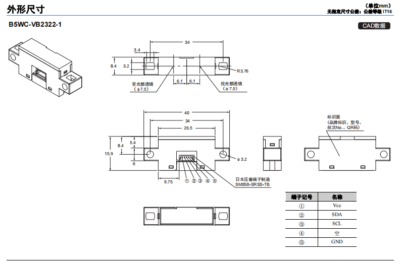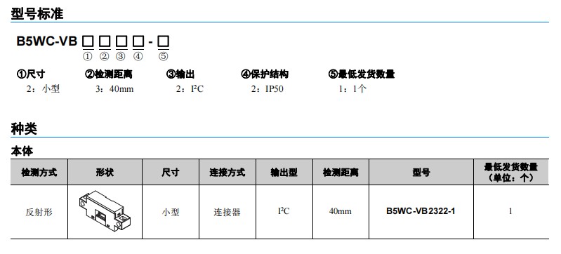 黑色、透明物體反射型傳感器B5W-LB1112-1