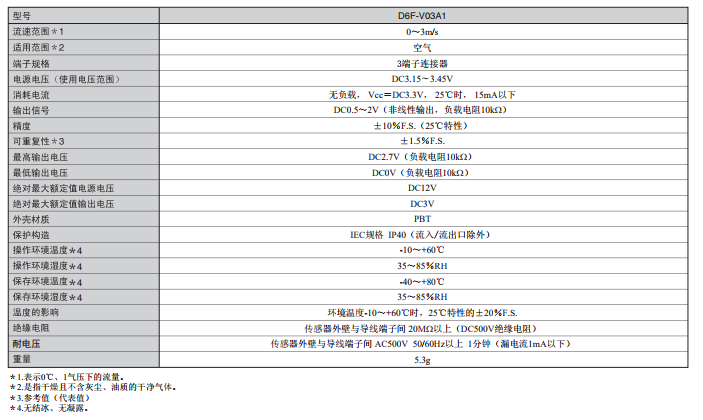 MEMS風(fēng)量流速傳感器D6F-V03A1