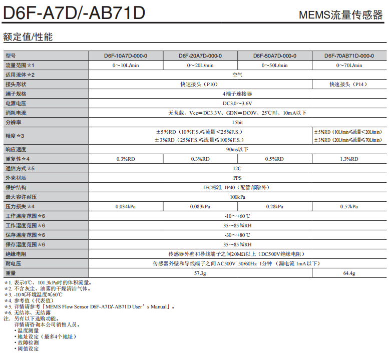 D6F-A7/-N7/-L7燃?xì)饬髁繗W姆龍傳感器
